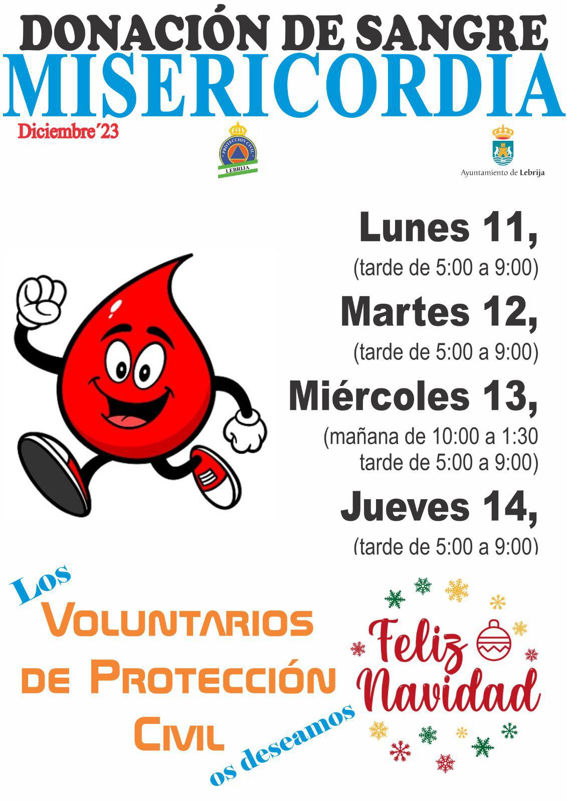El Ayuntamiento de Lebrija y Protección Civil realizan un llamamiento a la población para colaborar en la nueva campaña de donación de sangre que se celebra en Lebrija a partir del próximo lunes.