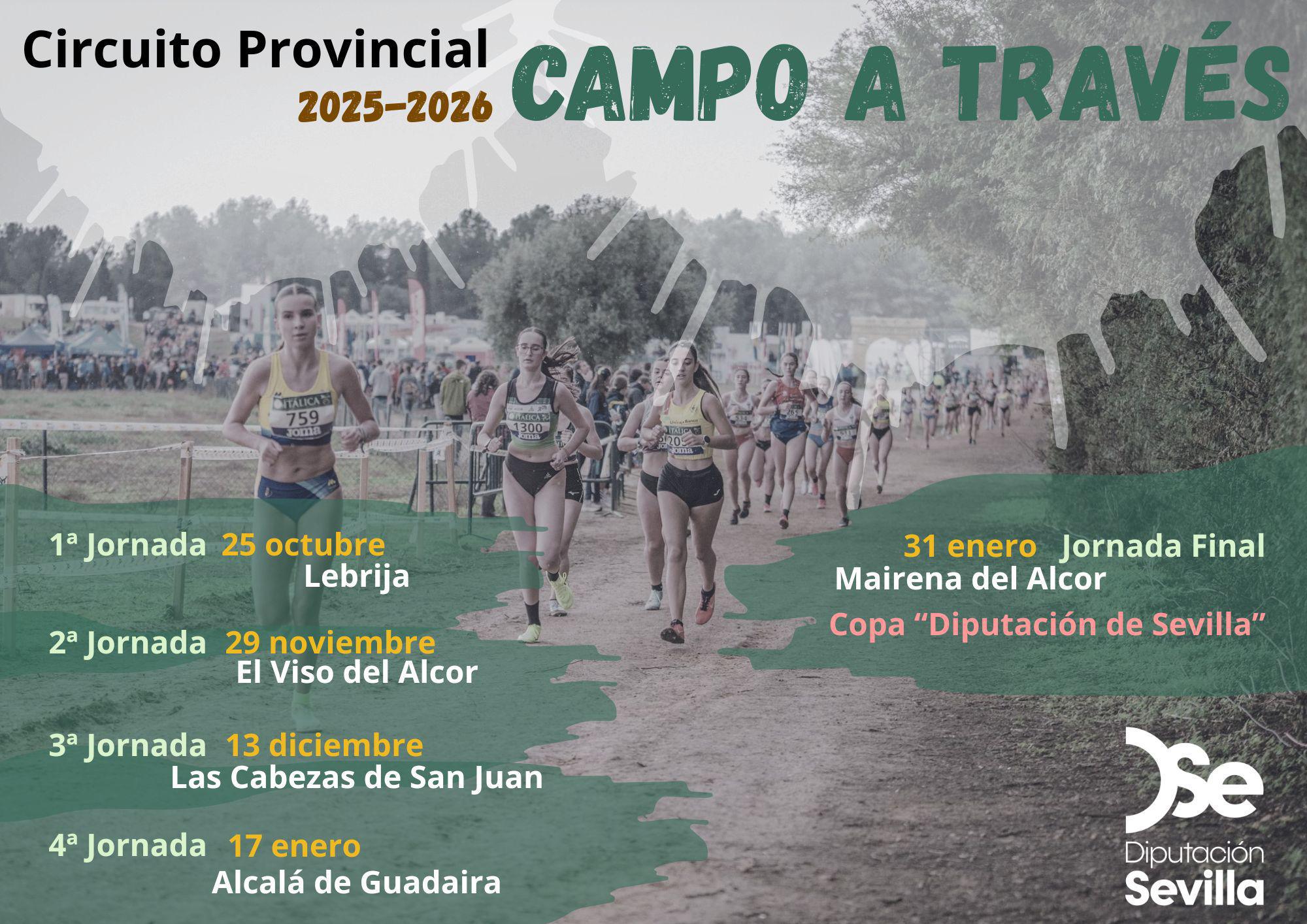 El próximo sábado, 25 de octubre, dará comienzo la temporada del Circuito Provincial de Campo a Través 2025-26 organizado por la Diputación Provincial de Sevilla y los diferentes ayuntamientos de la Provincia. Nuestra localidad ha sido designada para acoger la primera jornada. Será la segunda vez que nuestra localidad es elegida para albergar una prueba de esta disciplina deportiva. El Patronato Municipal de Deportes junto con el Club de Atletismo Lebrija, desarrollaron el proyecto para que nuestra localidad fuese incluida como sede del Circuito y tras la buena acogida de la temporada pasada, nuestra localidad ha sido elegida nuevamente para acoger una jornada de esta competición.