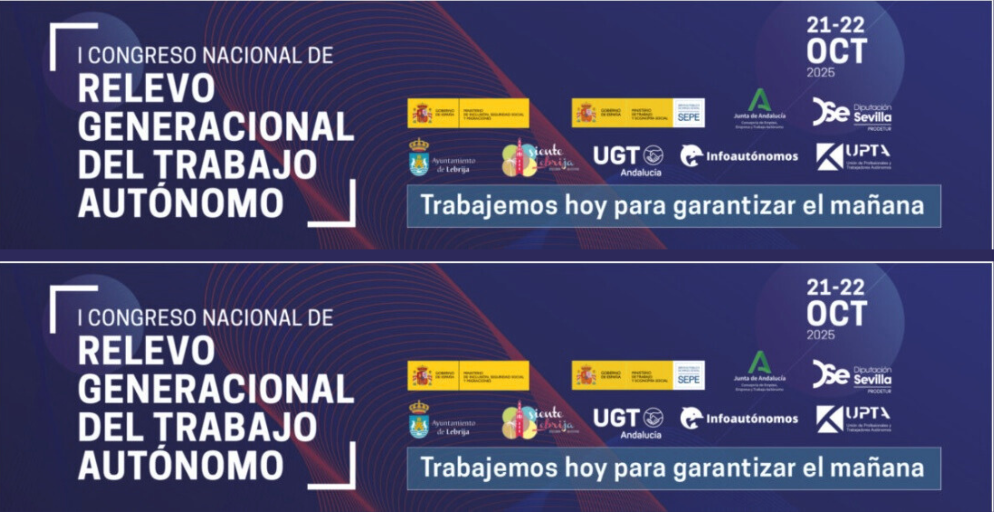 Lebrija acogerá la celebración del I Congreso Nacional de Relevo Generacional del Trabajo Autónomo, un encuentro promovido por la Unión de Profesionales y Trabajadores Autónomos (UPTA) con la colaboración del Ministerio de Inclusión, Seguridad Social y Migraciones, el Ministerio de Trabajo y Economía Social a través del Servicio Público de Empleo Estatal (SEPE), la Junta de Andalucía, la Diputación de Sevilla, a través de Prodetur, y el propio Ayuntamiento de Lebrija, UGT Andalucía e Infoautónomos.