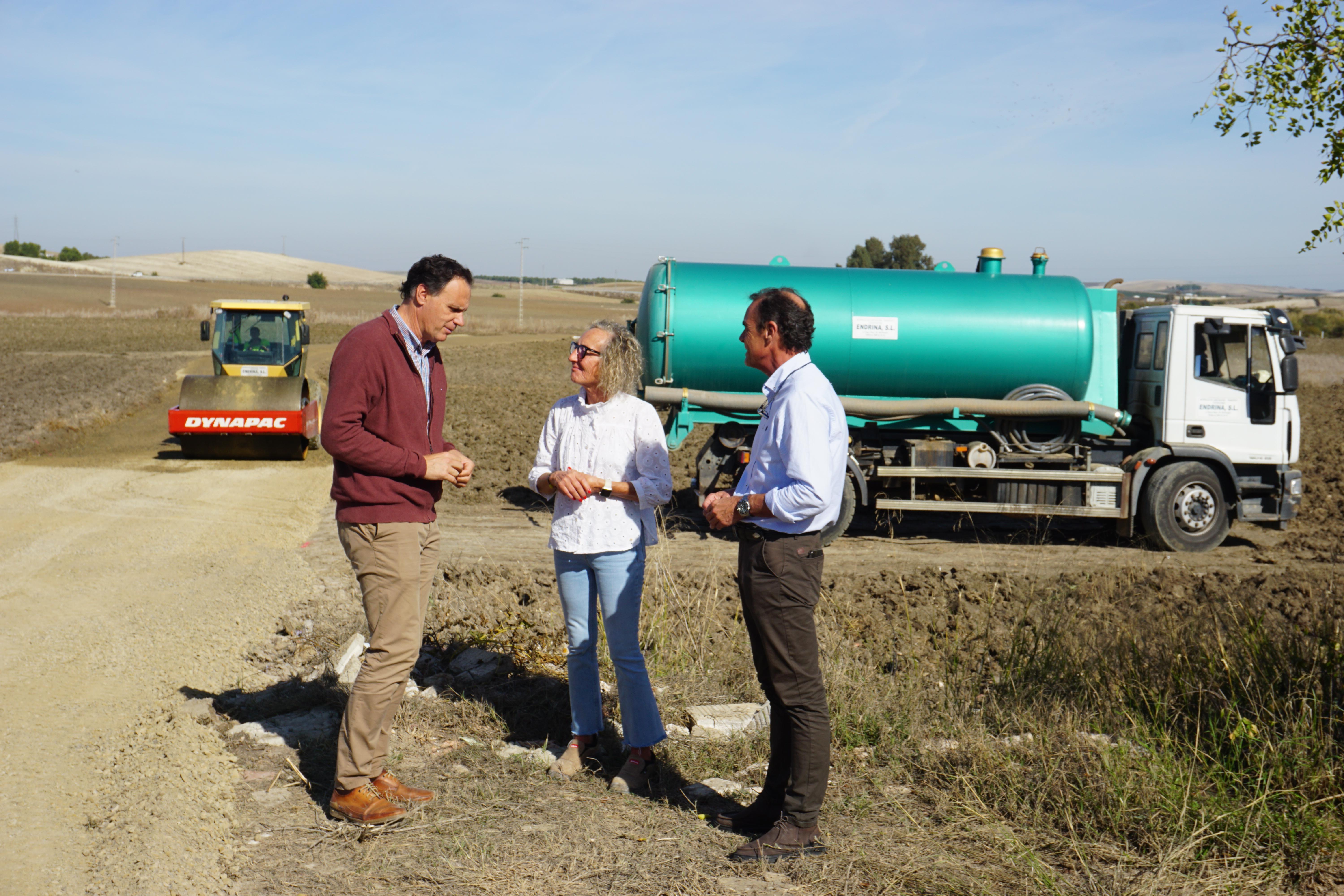 El alcalde de Lebrija, Pepe Barroso, ha visitado este martes, 11 de noviembre, las obras que el consistorio está ejecutando en el camino de Vejina, una actuación de mejora en las infraestructuras rurales del municipio. En el acto también han estado presentes el delegado de Mantenimiento de la ciudad, Antonio Manuel Caro, y la responsable técnica de Agricultura, María del Carmen Piñero.
