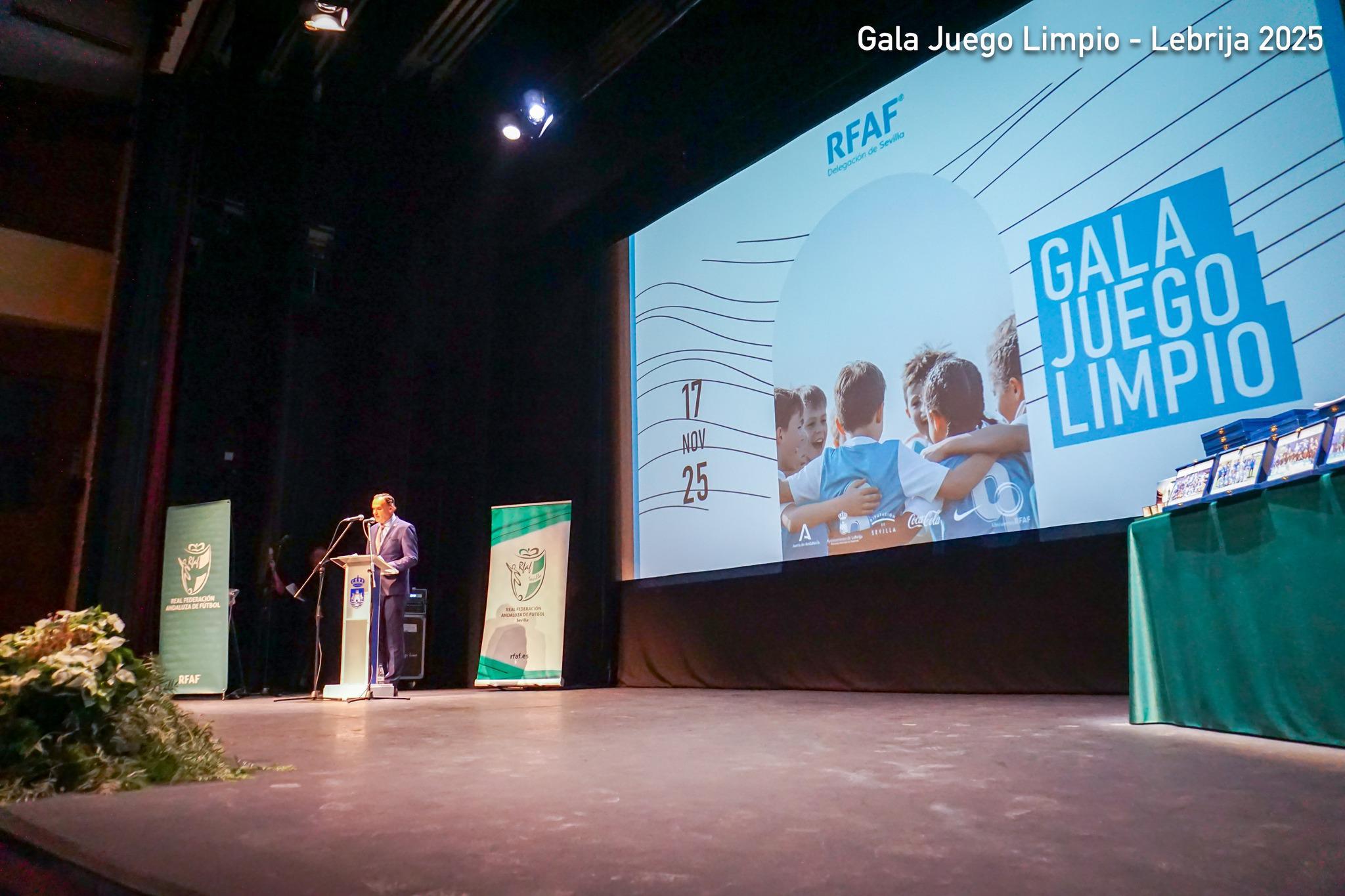El Teatro Municipal Juan Bernabé fue el escenario que acogió, el lunes 17 de noviembre, la Gala Anual de Entrega de Premios al Juego Limpio y la Deportividad, organizada por la Delegación Provincial de la Real Federación Andaluza de Fútbol en Sevilla. En esta edición, Lebrija fue la ciudad designada para celebrar esta tradicional cita con los valores del deporte, contando para ello con la colaboración del Patronato Municipal de Deportes del Ayuntamiento de Lebrija.