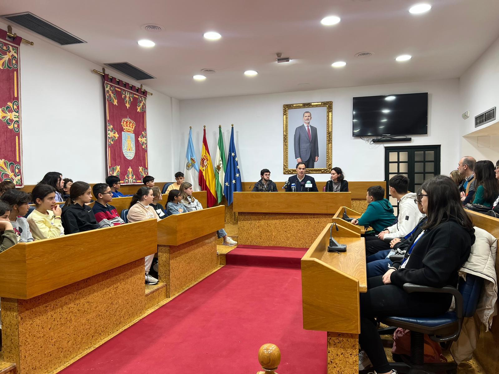 El Ayuntamiento de Lebrija ha celebrado este miércoles, 18 de febrero, una recepción oficial al alumnado que ha formado parte del programa Erasmus+ con el CEIP Elio Antonio, en un acto institucional desarrollado en el Salón de Plenos.
