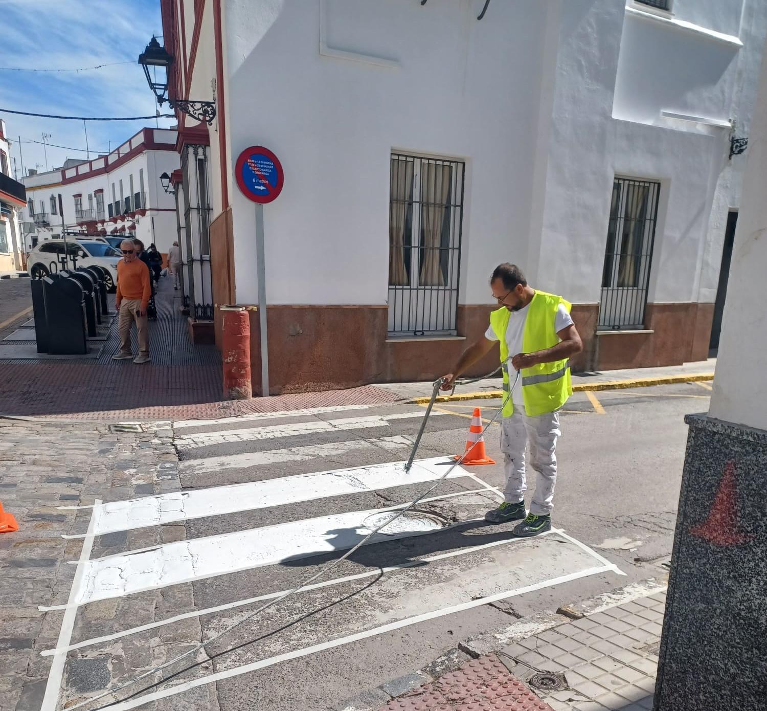 Unas labores que proseguirán después de la festividad de Semana Santa en todas las barriadas de Lebrija, interviniéndose en la mayoría de las señalizaciones horizontales del municipio.